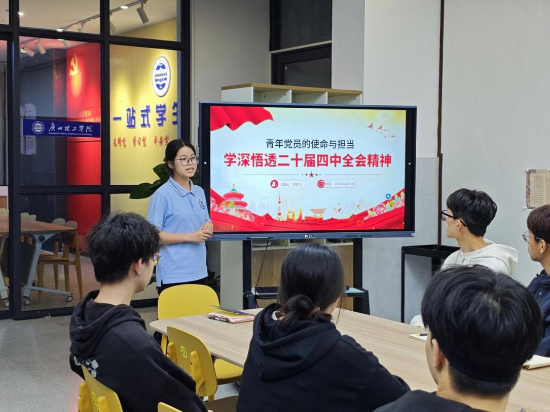10月23日晚,suncitygroup太阳集团员工党支部联合员工第九社区召开“学深悟透党的二十届四中全会精神——以专业担当践行青春使命”专题学习会。会议由辅导员何玉华老师主讲,13名员工党员代表参与学习。