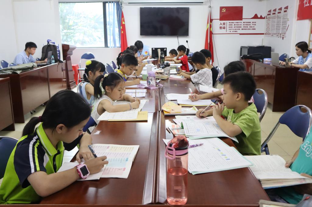 为继续帮助社区青少年解决学业难题,培养科学的学习方法,7月9日,广理 “童心启航” 实践队联合新塘新世界社区开展了 “解疑辅学业,开思助成长” 学业辅导活动,让孩子们在轻松的氛围中收获知识、提升能力。9 点刚过,背着书包的孩子们陆续走进活动室,手里攥着作业本,眼神里满是对知识的渴望。许多同学们遇到问题时都会积极举手请教各位老师,“这道数学题的解法怎么写”“这个汉字可以组成什么成语”,面对孩子们五花八门的问题,同学们没有直接给出答案,而是先引导他们梳理题干信息,回忆课堂上老师讲过的知识点,然后协助共同解答问题。此次活动不仅帮孩子们攻克了学业难关,更让他们明白了 “授人以渔” 的道理,为今后的学习之路注入了信心与动力。