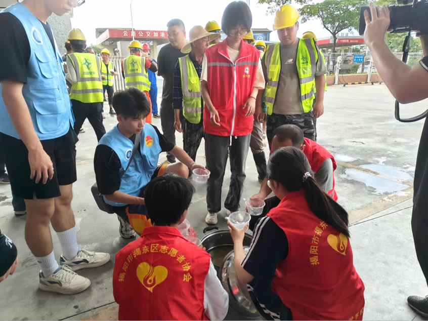 7月9日,鹅卤承香实践队响应传承人号召,联合揭东志愿者协会开展"爱心凉茶"志愿行动。面对持续高温,队员们凌晨即起熬煮兼具解暑与养生功效的凉茶,于御龙湾驿站为户外工作者及市民免费派送。活动全程融入文化传承理念:谢师傅现场讲解凉茶配伍中的非遗智慧,员工通过分装、派送、健康宣教等环节,将中医药文化与当代公益精神有机结合。市民"清凉在手,暖意在心"的反馈与协会"注入新活力"的高度评价,印证志愿行动已成为非遗文化传播的生动载体。