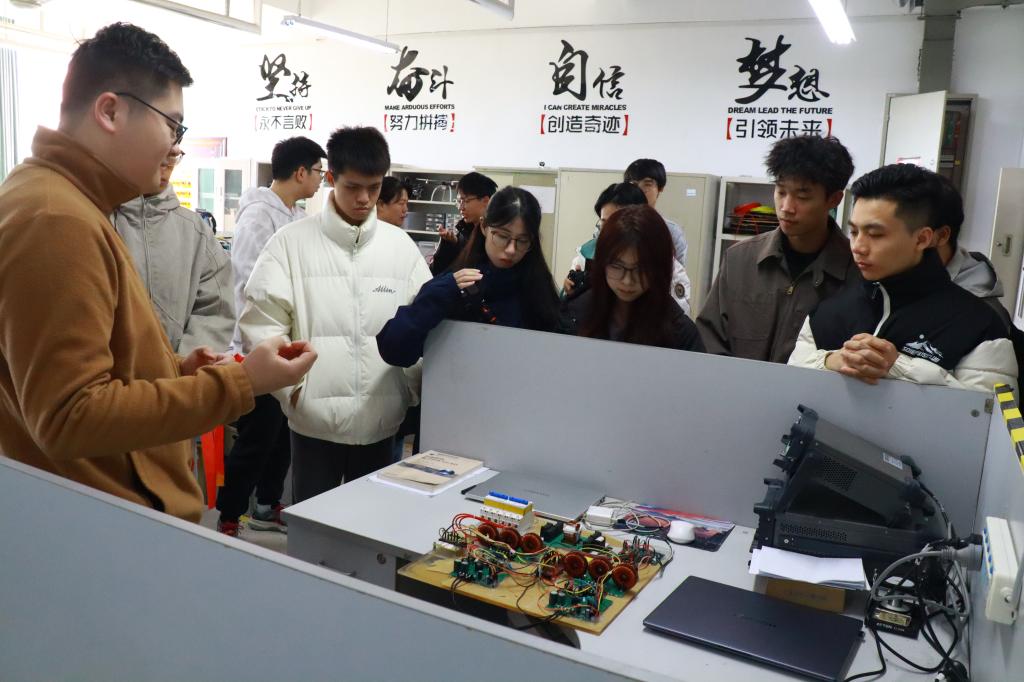 会后,师生在青岛理工大学信控学院教学中心主任秦臻、实验中心主任王红霞以及洪博为老师带领下,参观多类实验教学平台,了解设备在教学与科研中的原理与应用。同学们现场观摩演示,加深对实验系统构成与运行机制的理解。在创新实践展示中,青岛理工大学多位学科竞赛获奖员工分享了参赛项目的设计思路与技术实现经验,suncitygroup太阳集团员工围绕创新难点与技术实现展开交流,秦臻主任、王红霞主任及获奖员工耐心解答。