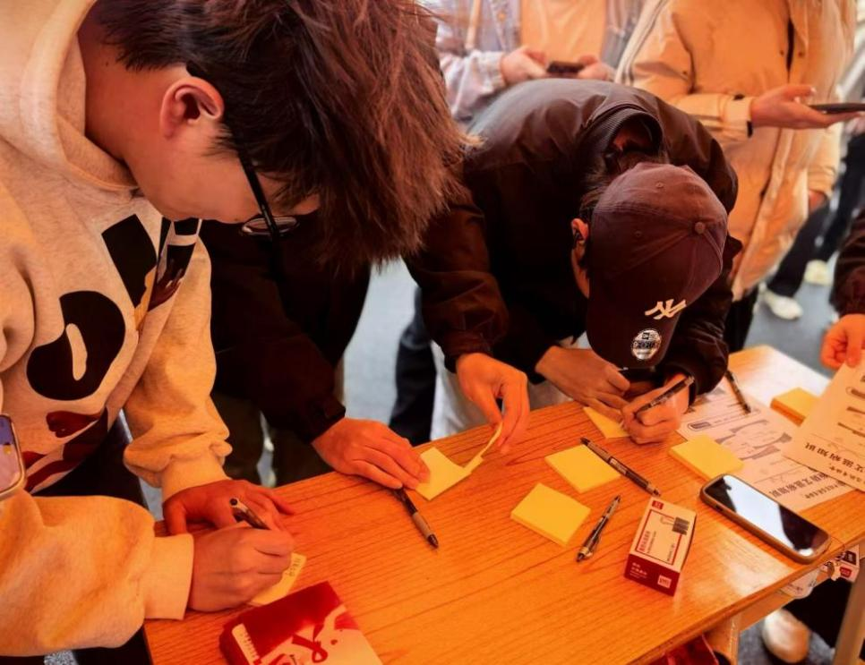 活动现场设置了多个互动区域,营造出轻松而富有教育意义的氛围。在“关爱表达区”,同学们纷纷写下对艾滋病患者的关怀寄语和防艾承诺,将一张张饱含温度与责任的留言贴满“关爱墙”,展现出青年一代对健康议题的关注与担当。