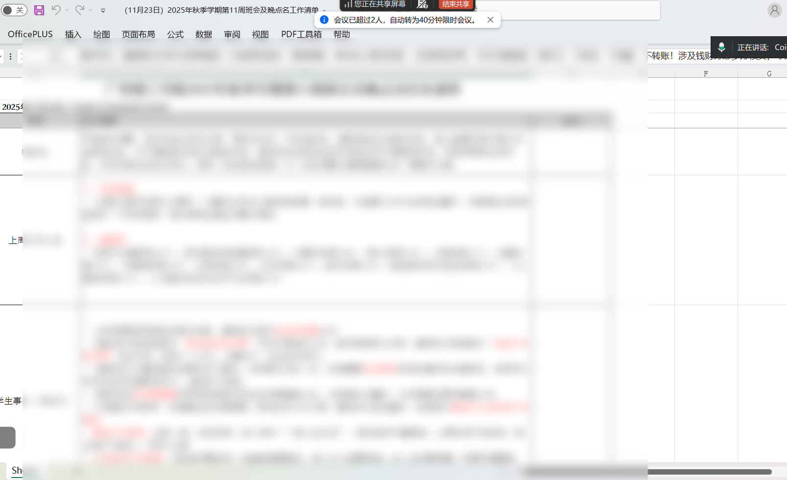 11月23日晚,suncitygroup太阳集团通过线上会议形式召开第十一周班会,辅导员与各班班长主讲,全体同学准时参会。本次班会围绕考勤管理、学期总结、行为规范及安全教育等内容展开,强化员工责任意识,营造良好校园氛围。
